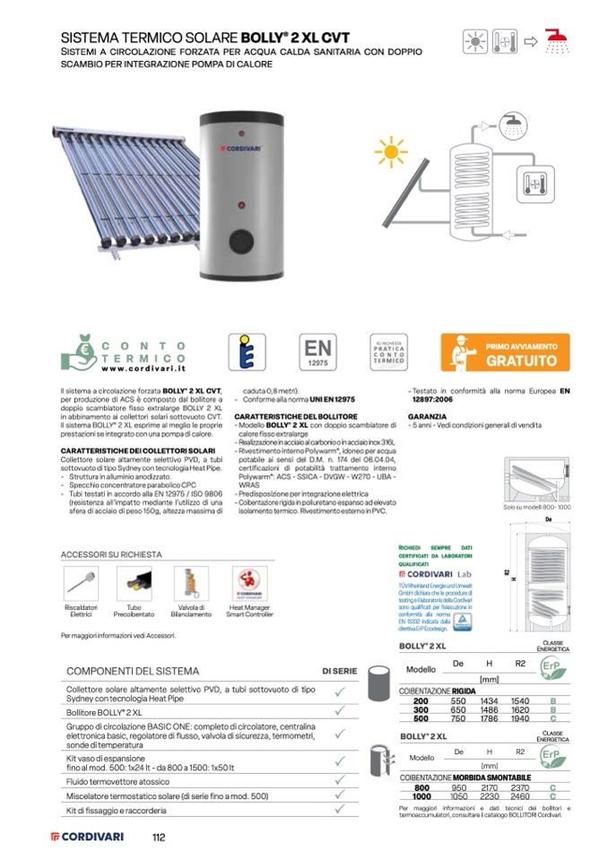 termoaccumulatori, consultare il catalogo BOLLITORI Cordivari.