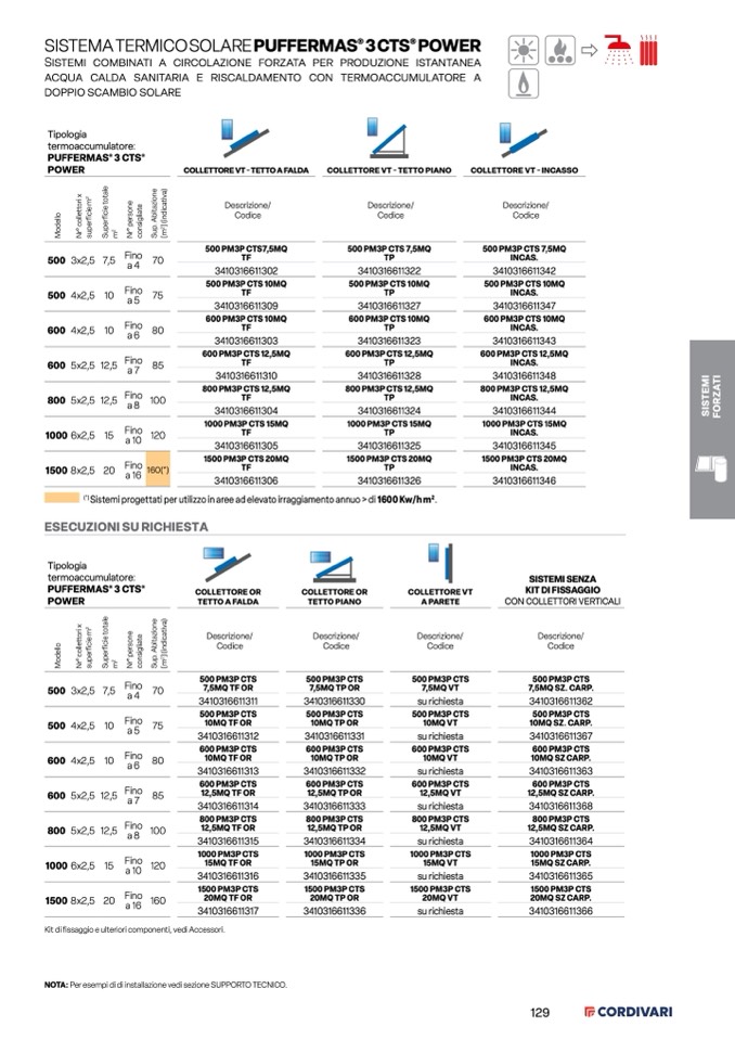 Sistemi progettati per utilizzo in aree ad elevato irraggiamento annuo > di 1600 Kw/h m