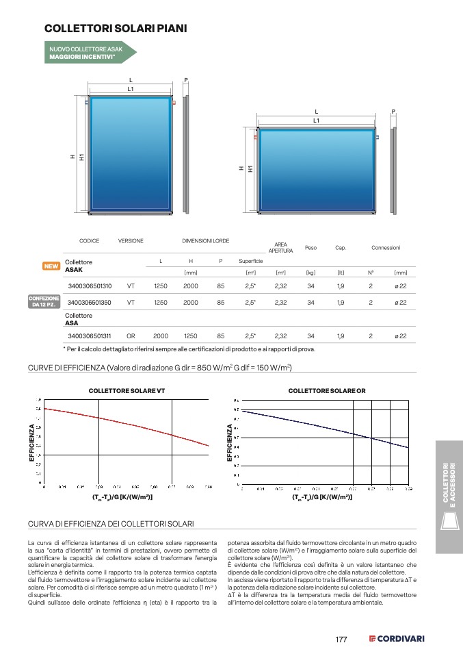L’efficienza è definita come il rapporto tra la potenza termica captata