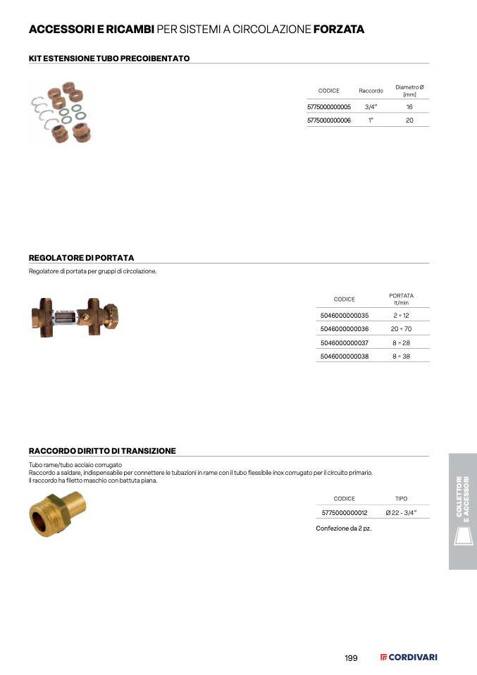 Raccordo a saldare, indispensabile per connettere le tubazioni in rame con il tubo flessibile inox corrugato per il circuito primario.