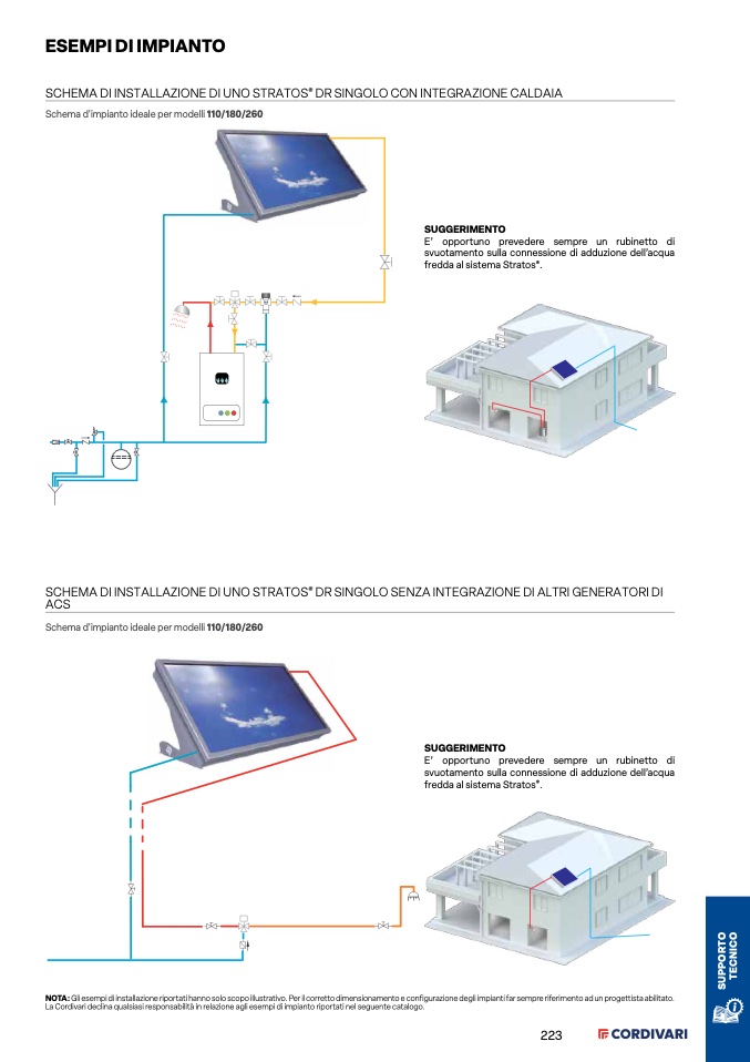 NOTA: Gli esempi di installazione riportati hanno solo scopo illustrativo. Per il corretto dimensionamento e configurazione degli impianti far sempre riferimento ad un progettista abilitato.