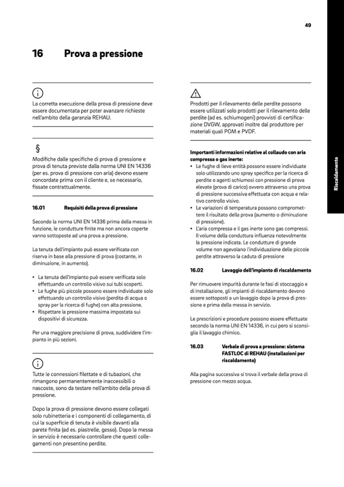 secondo la norma UNI EN 14336, in cui pero si sconsi-