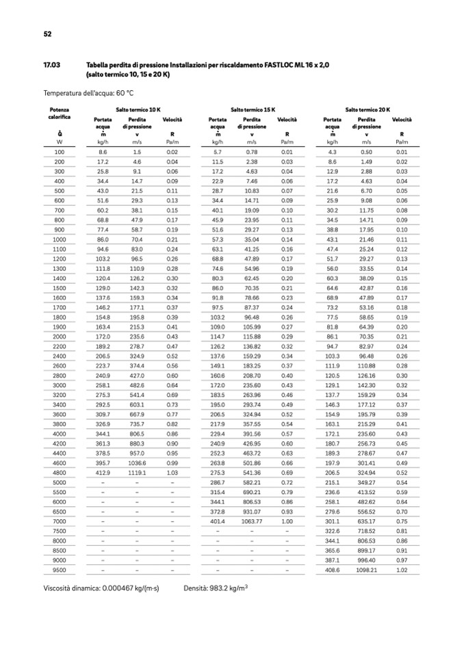 Tabella perdita di pressione Installazioni per riscaldamento FASTLOC ML 16 x 2,0