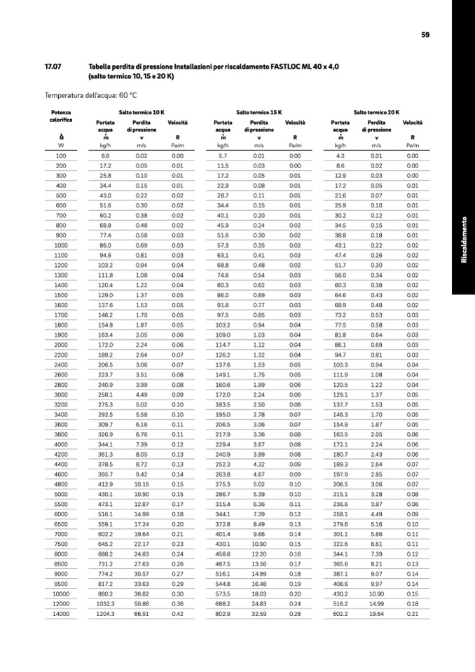 Tabella perdita di pressione Installazioni per riscaldamento FASTLOC ML 40 x 4,0