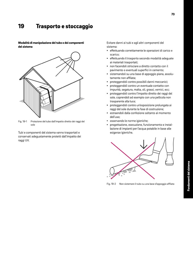 Tubi e componenti del sistema vanno trasportati e