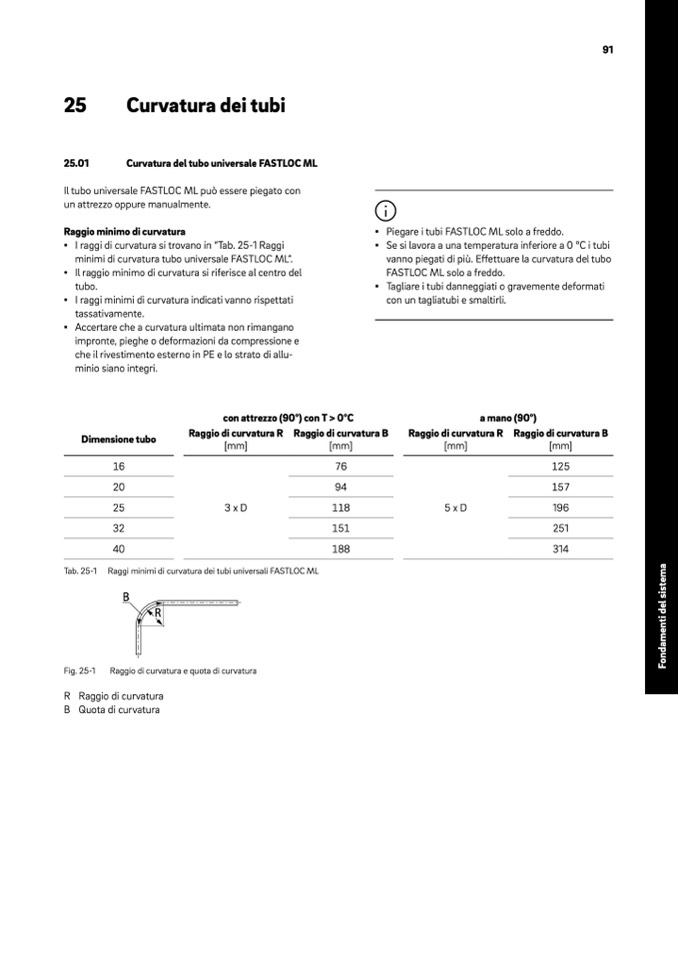 Raggi minimi di curvatura dei tubi universali FASTLOC ML