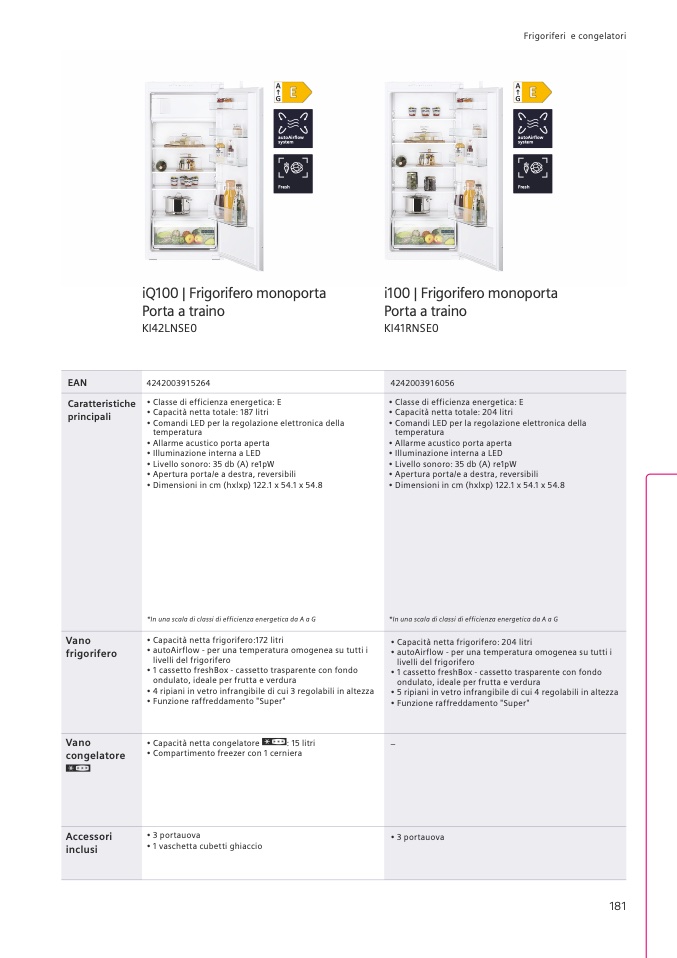 • Capacità netta totale: 187 litri