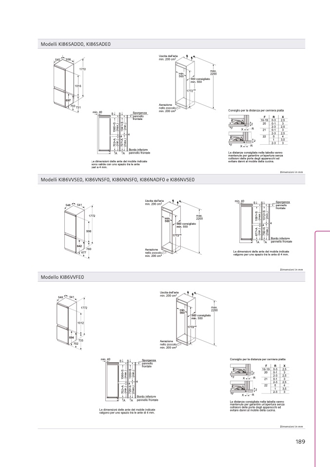 Modelli KI86VVSE0, KI86VNSF0, KI86NNSF0, KI86NADF0 e KI86NVSE0