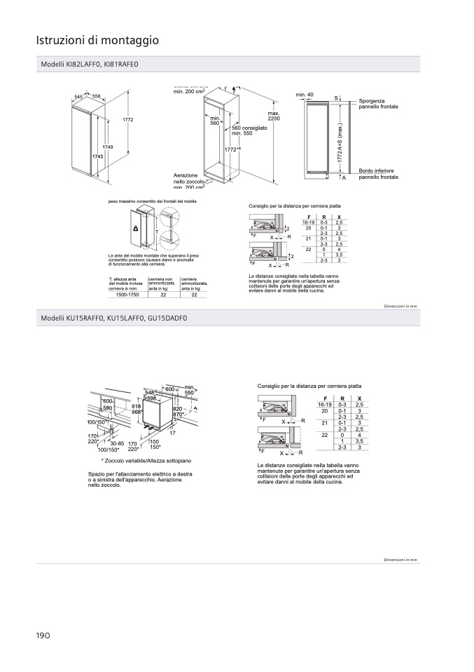 Modelli KU15RAFF0, KU15LAFF0, GU15DADF0