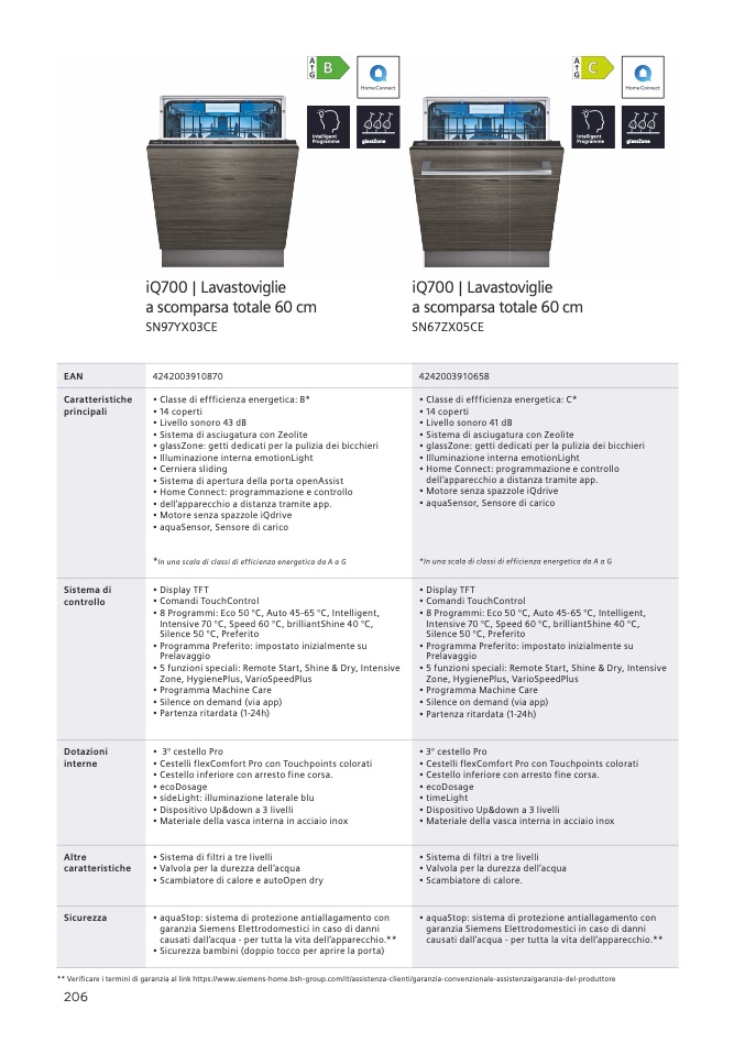 ** Verificare i termini di garanzia al link https://www.siemens-home.bsh-group.com/it/assistenza-clienti/garanzia-convenzionale-assistenza/garanzia-del-produttore
