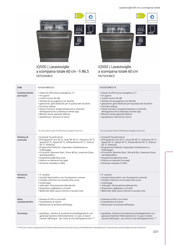 ** Verificare i termini di garanzia al link https://www.siemens-home.bsh-group.com/it/assistenza-clienti/garanzia-convenzionale-assistenza/garanzia-del-produttore
