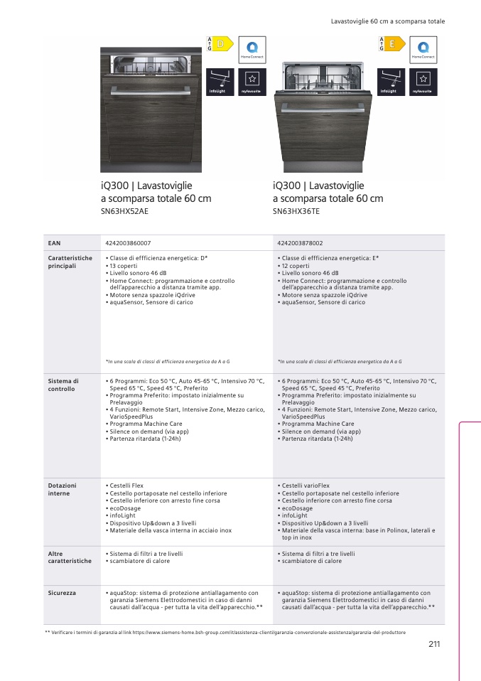 ** Verificare i termini di garanzia al link https://www.siemens-home.bsh-group.com/it/assistenza-clienti/garanzia-convenzionale-assistenza/garanzia-del-produttore