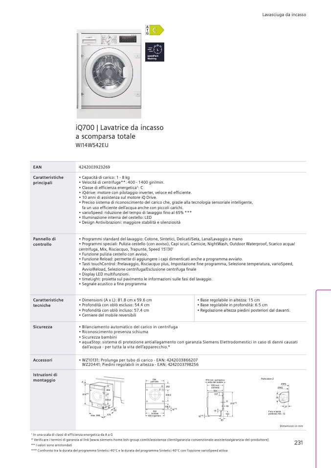 • Profondità con oblò incluso: 57.4 cm