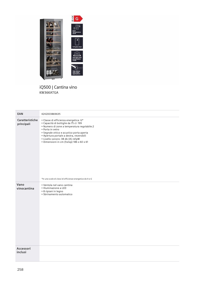 • Capacità di bottiglie da 75 cl: 199