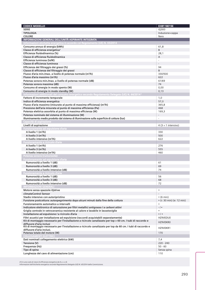 Informazioni etichetta energetica in accordo col Regolamento (UE) N. 65/2014