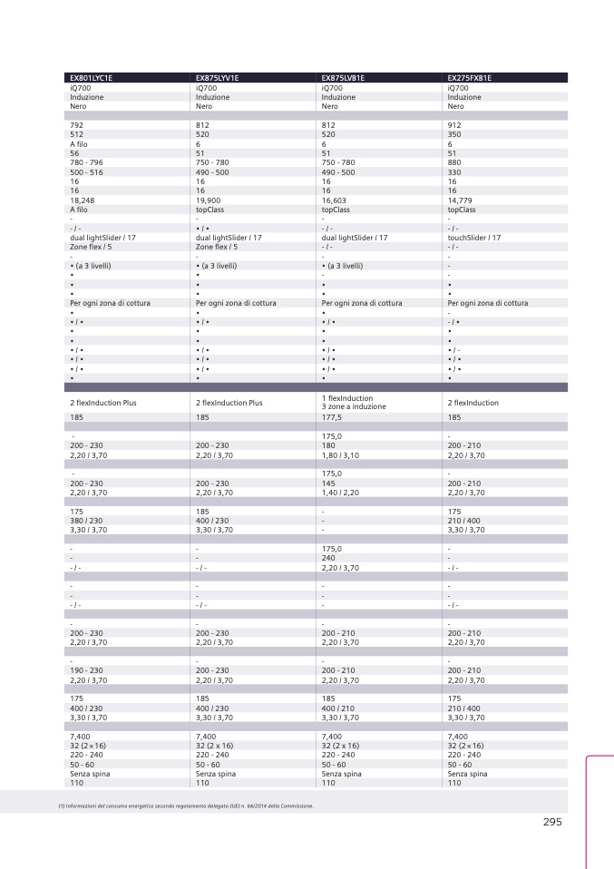 (1) Informazioni del consumo energetico secondo regolamento delegato (UE) n. 66/2014 della Commissione.