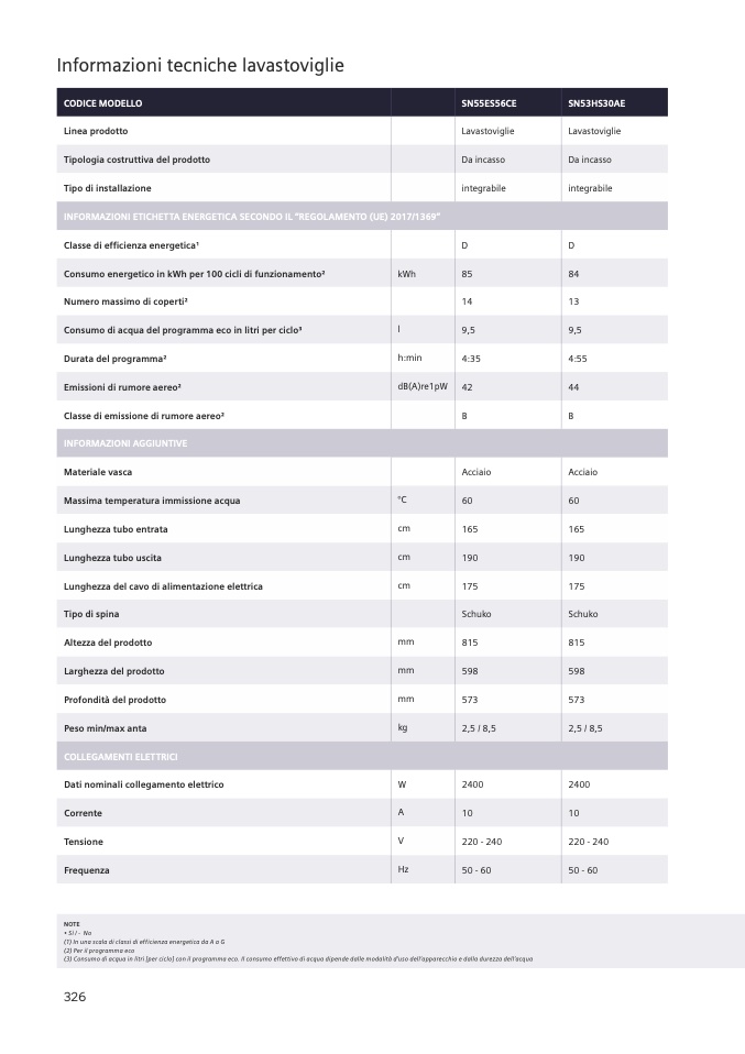 (3) Consumo di acqua in litri [per ciclo] con il programma eco. Il consumo effettivo di acqua dipende dalle modalità d’uso dell’apparecchio e dalla durezza dell’acqua