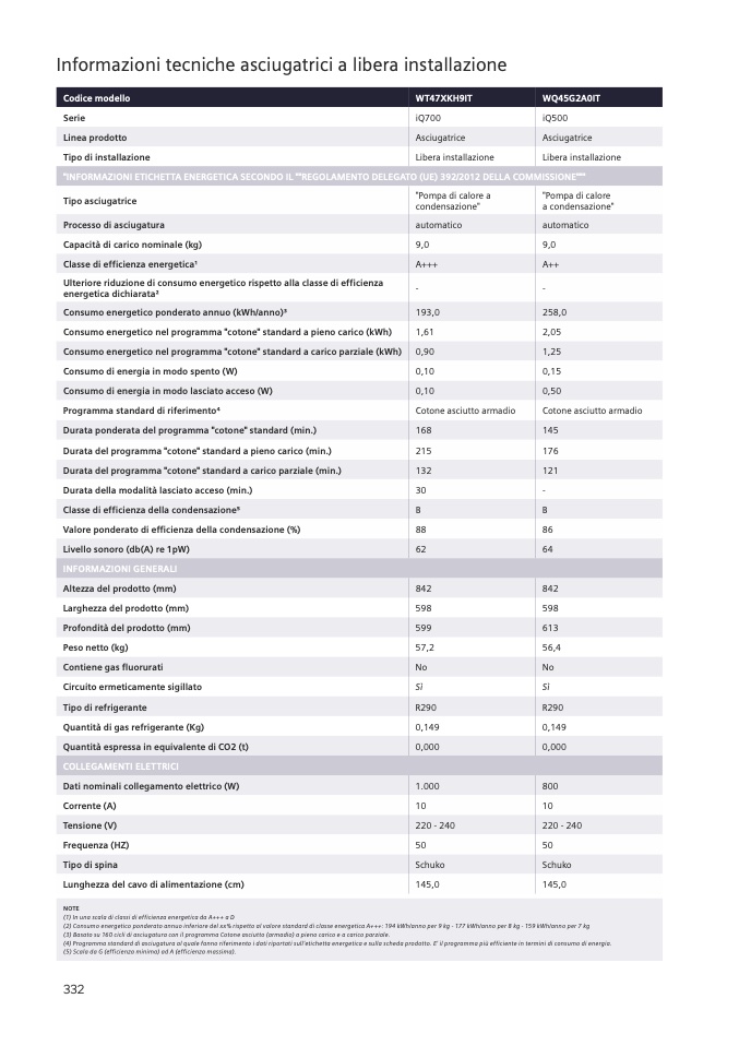 (2) Consumo energetico ponderato annuo inferiore del xx% rispetto al valore standard di classe energetica A+++: 194 kWh/anno per 9 kg - 177 kWh/anno per 8 kg - 159 kWh/anno per 7 kg