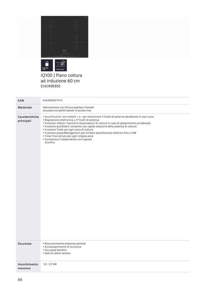 • Funzione powerManagement per limitare assorbimento elettrico fino a 1kW