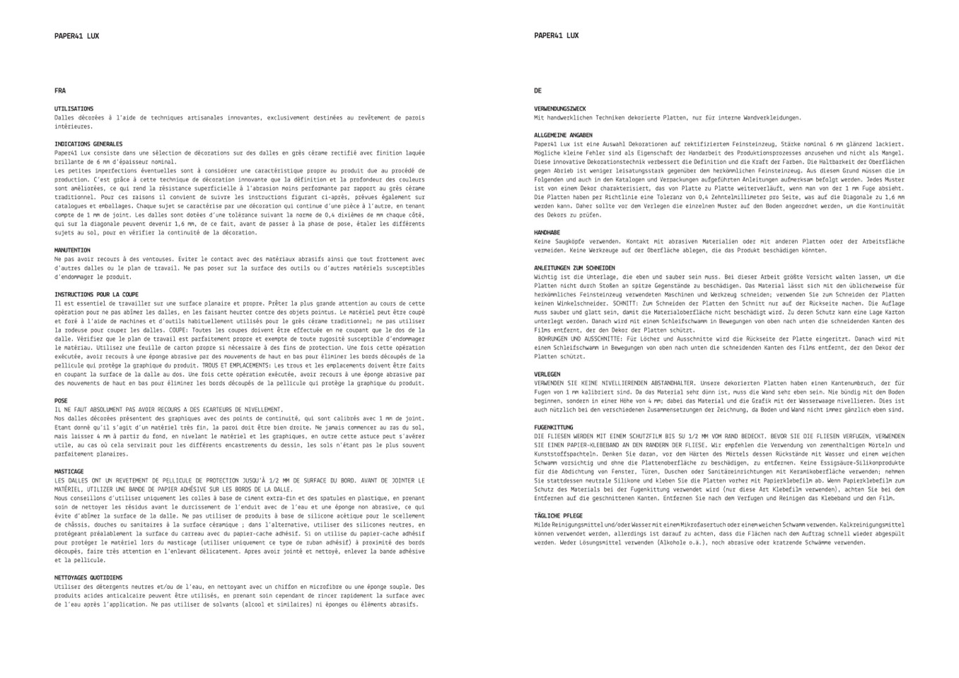 Paper41 Lux ist eine Auswahl Dekorationen auf rektifiziertem Feinsteinzeug, Stärke nominal 6 mm glänzend lackiert.