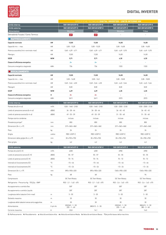 SPECIFICHE TECNICHE DIGITAL INVERTER - UNITÀ INTERNE HM