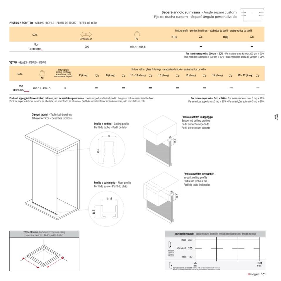 Per misure superiori ai 3mq + 20% - For measurements over 3 mq + 20%
