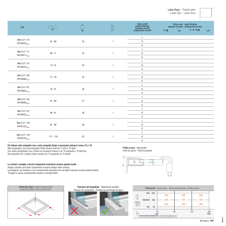Prodotti speciali - Special products - Medidas especiales factibles - Medidas especiais