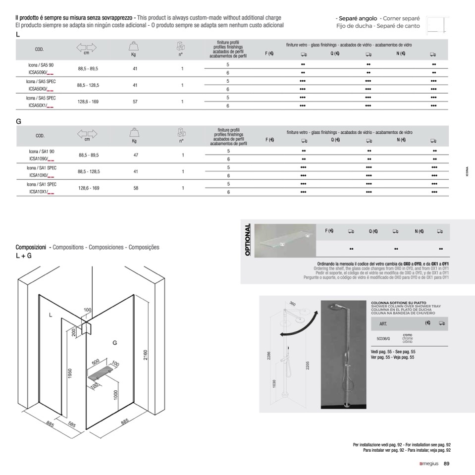 Ordinando la mensola il codice del vetro cambia da 0X0 a 0Y0, e da 0X1 a 0Y1