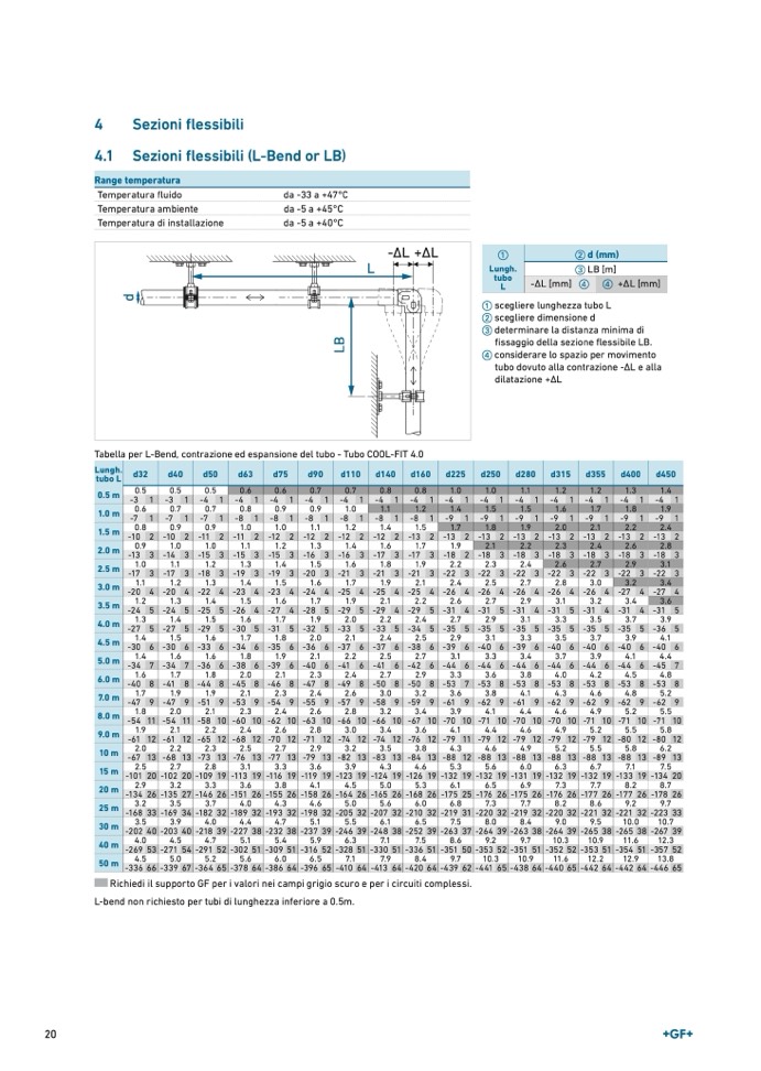 Tabella per L-Bend, contrazione ed espansione del tubo - Tubo COOL-FIT 4.0