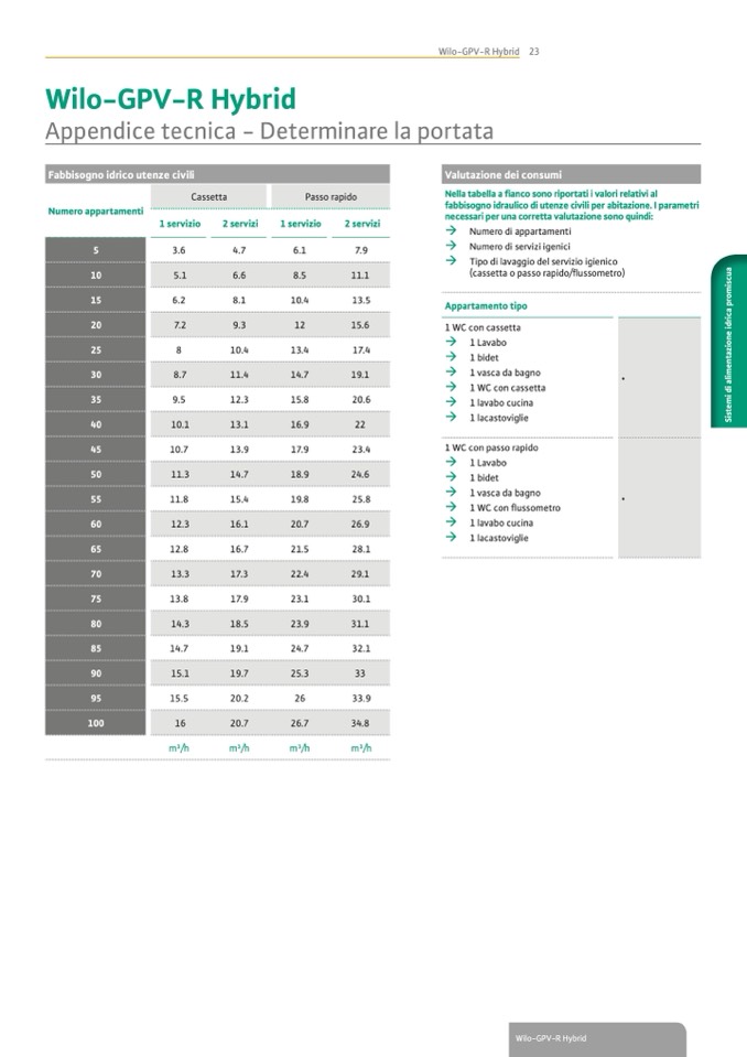 fabbisogno idraulico di utenze civili per abitazione. I parametri