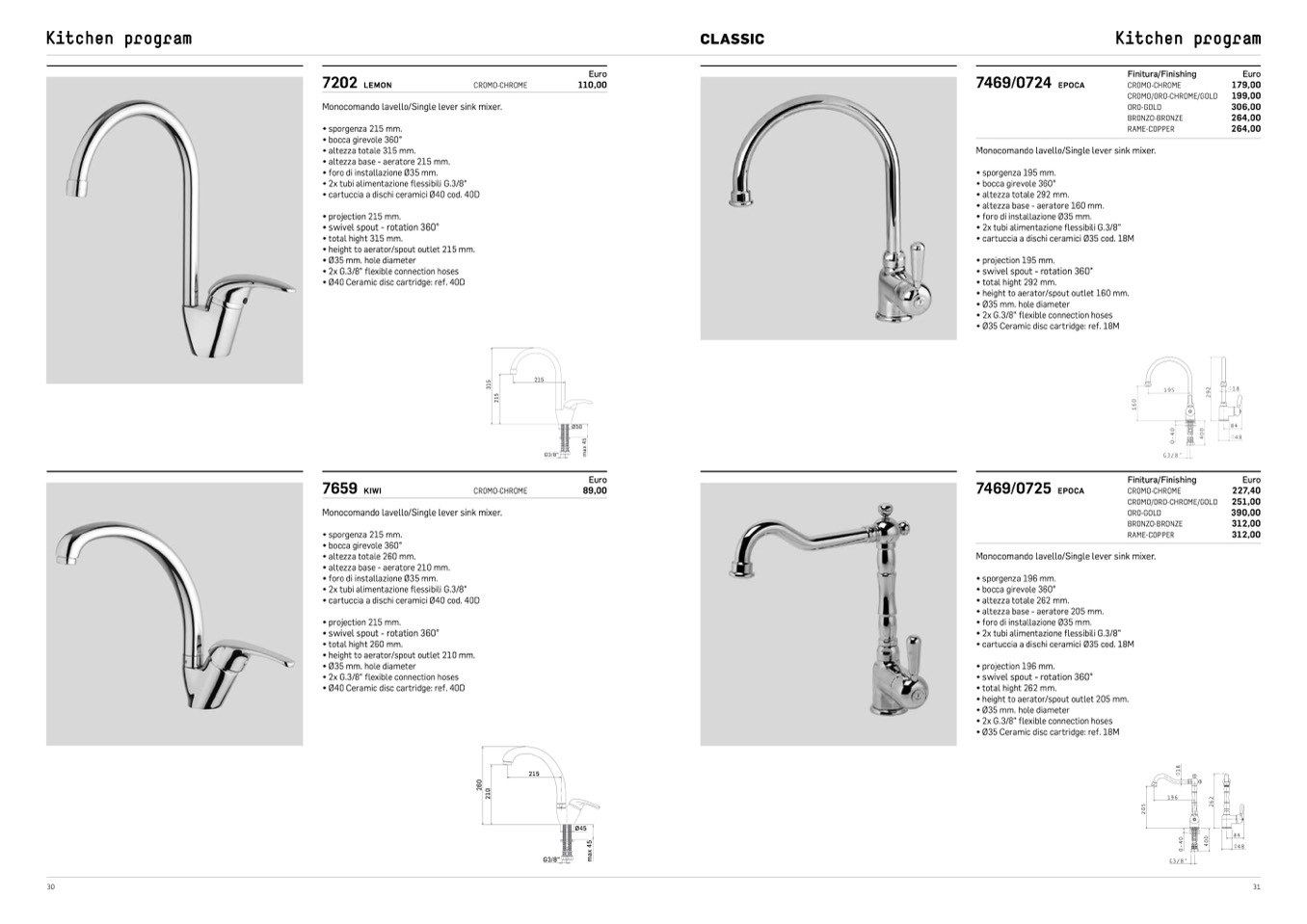 Monocomando lavello/Single lever sink mixer.