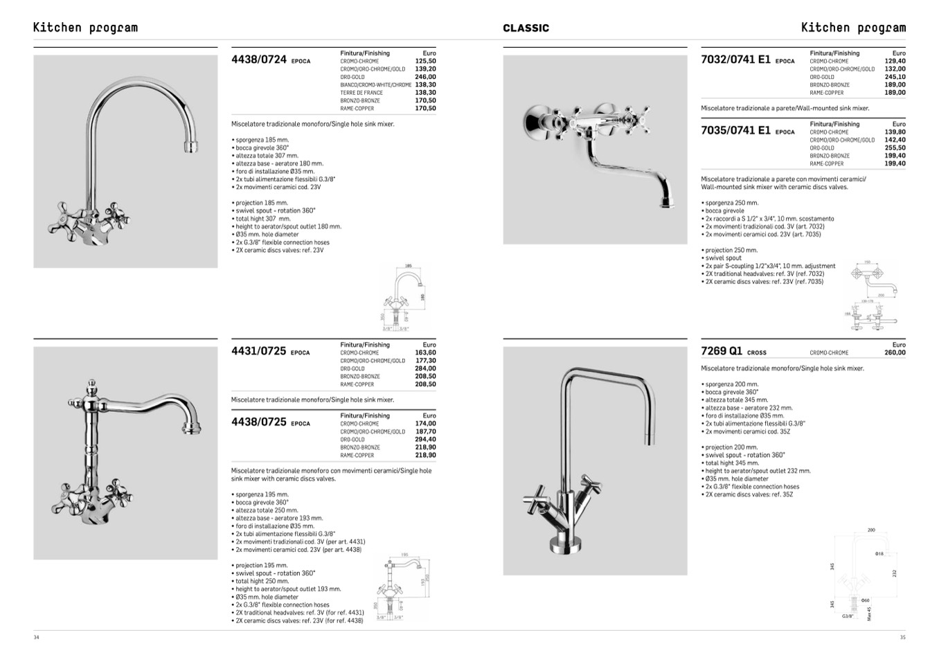 Miscelatore tradizionale a parete/Wall-mounted sink mixer.