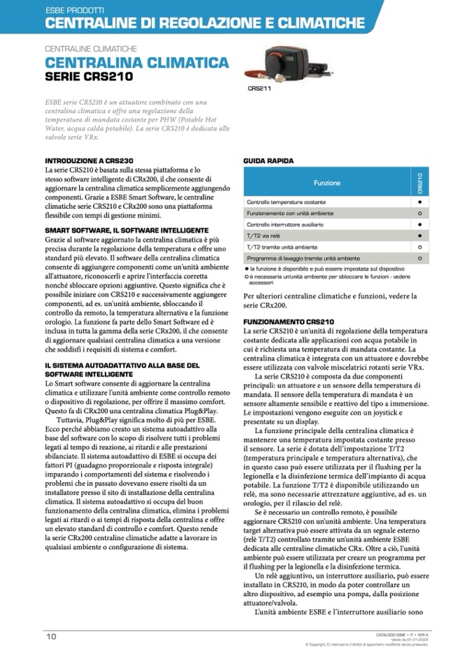 Water, acqua calda potabile). La serie CRS210 è dedicata alle