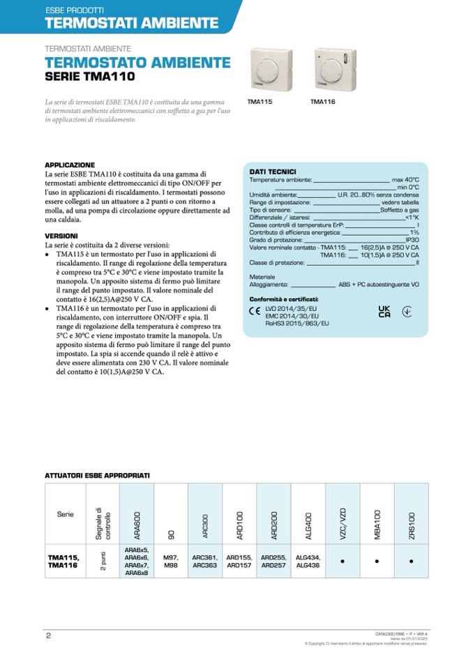 La serie di termostati ESBE TMA110 è costituita da una gamma