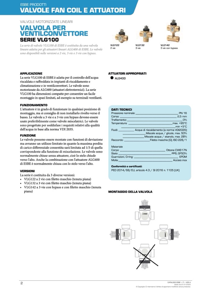 di ESBE è normalmente chiusa con lo stelo verso l'alto.