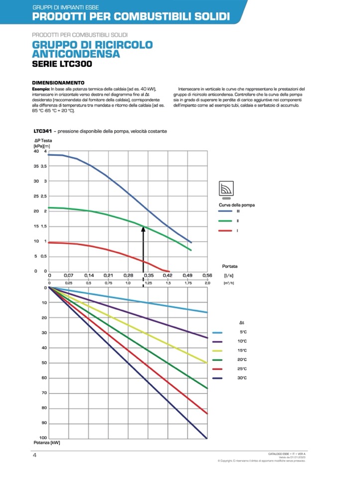 gruppo di ricircolo anticondensa. Controllare che la curva della pompa