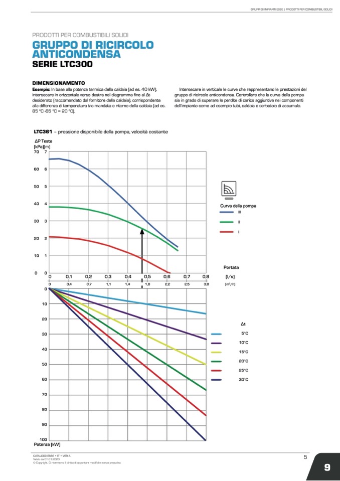 gruppo di ricircolo anticondensa. Controllare che la curva della pompa