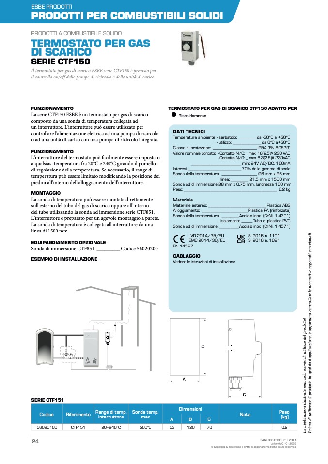 La serie CTF150 ESBE è un termostato per gas di scarico