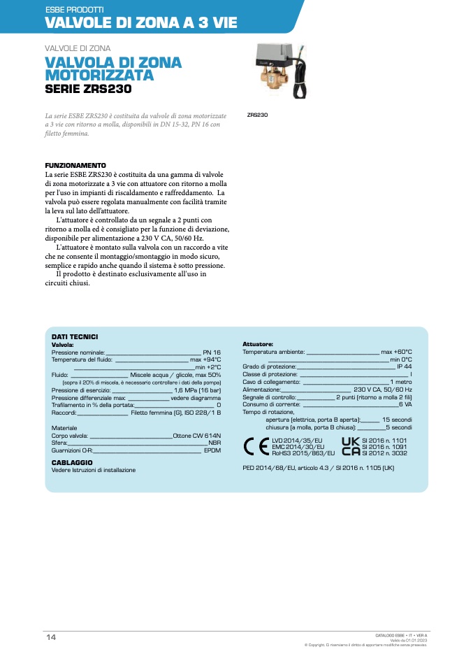 La serie ESBE ZRS230 è costituita da una gamma di valvole