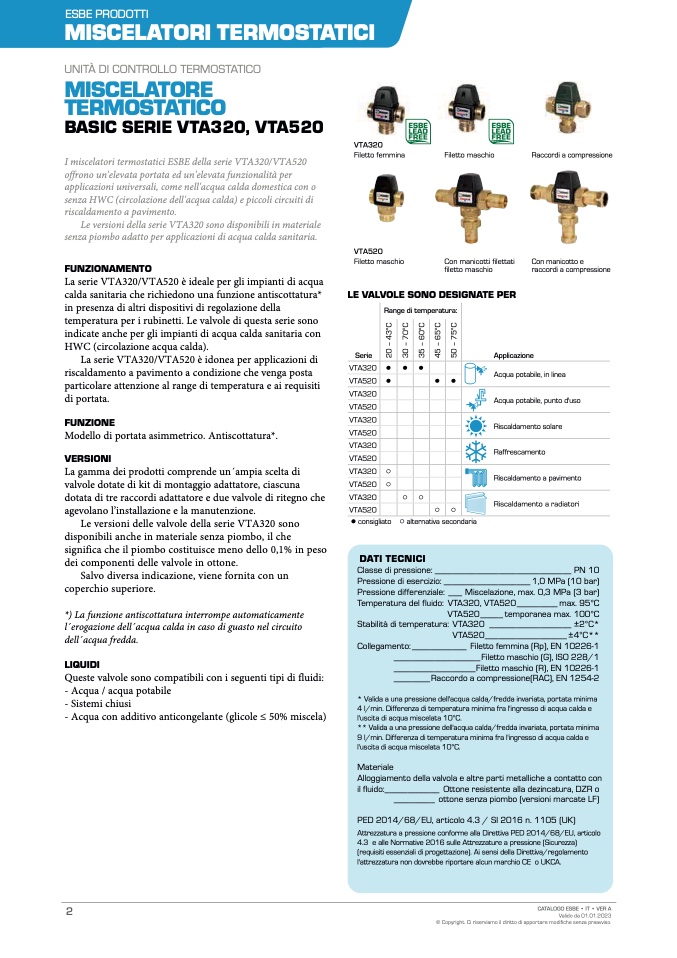 temperatura per i rubinetti. Le valvole di questa serie sono
