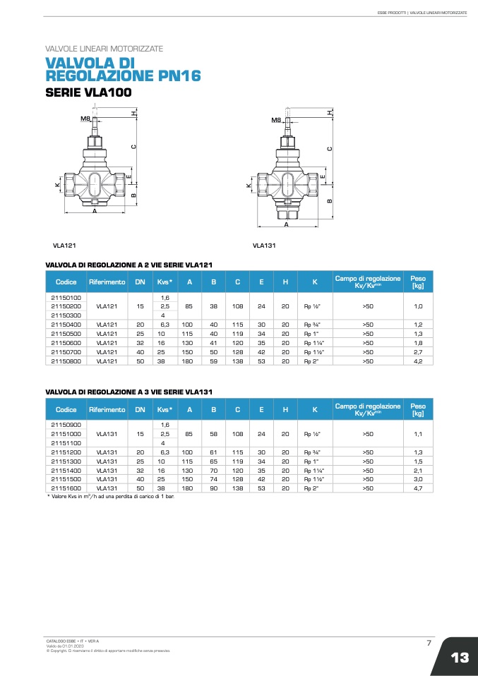 VALVOLA DI REGOLAZIONE A 3 VIE SERIE VLA131