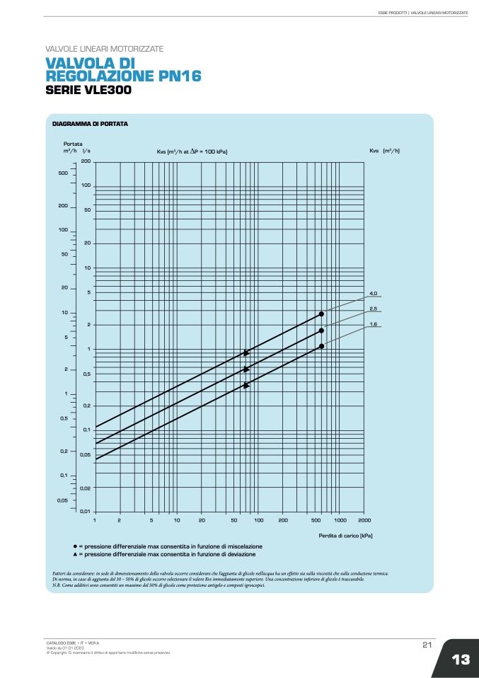 Di norma, in caso di aggiunta del 30 – 50% di glicole occorre selezionare il valore Kvs immediatamente superiore. Una concentrazione inferiore di glicole è trascurabile.