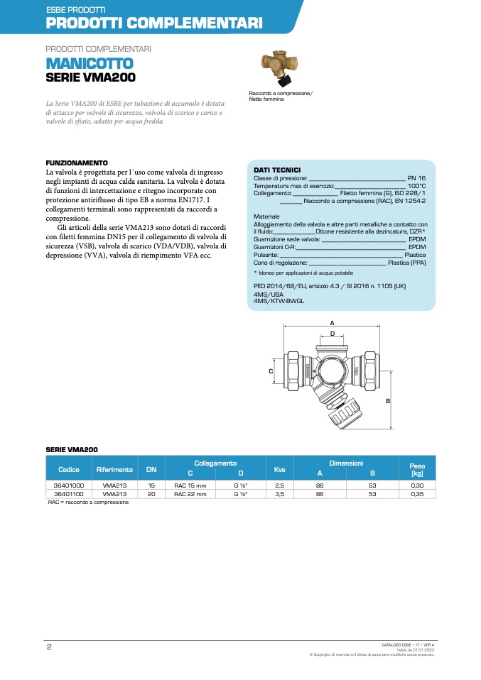 Gli articoli della serie VMA213 sono dotati di raccordi