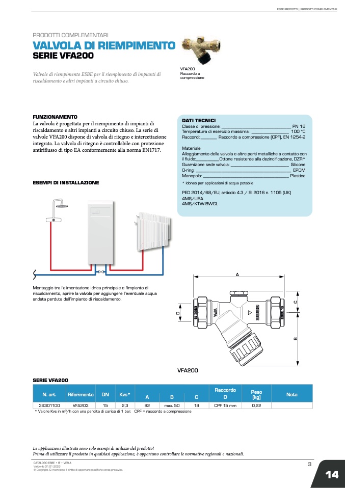 valvole VFA200 dispone di valvola di ritegno e intercettazione