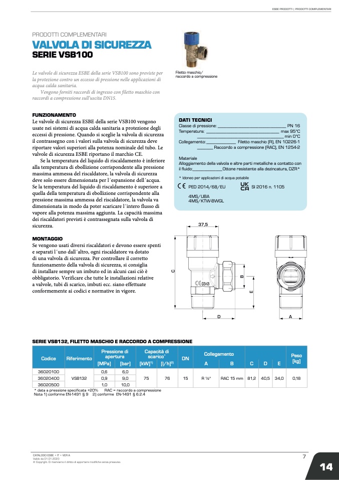 Le valvole di sicurezza ESBE della serie VSB100 sono previste per