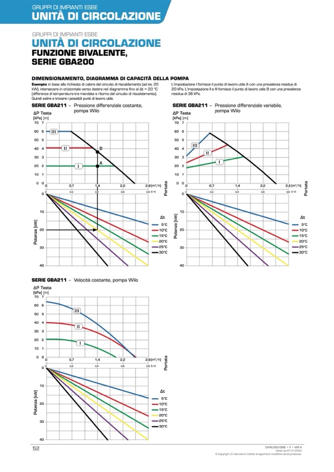 20 kPa. L’impostazione II e III fornisce il punto di lavoro utile B con una prevalenza