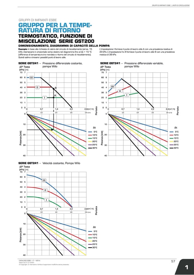 20 kPa. L’impostazione II e III fornisce il punto di lavoro utile B con una prevalenza