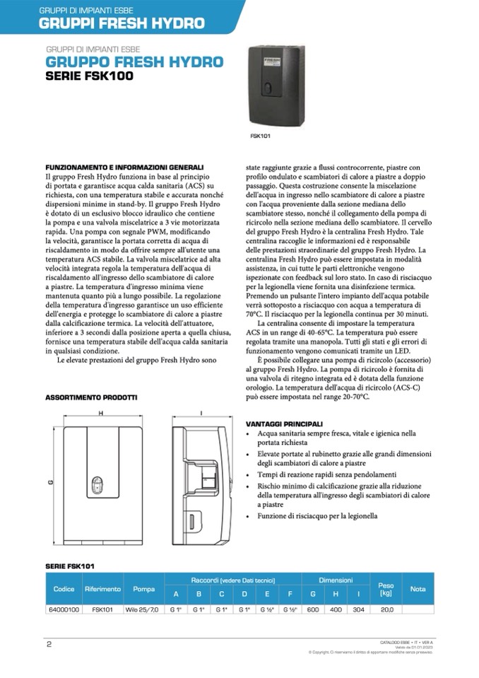 al gruppo Fresh Hydro. La pompa di ricircolo è fornita di