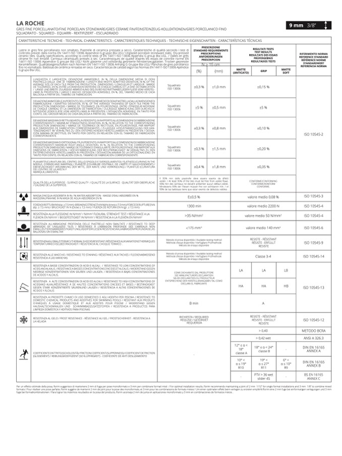 controllo previsti dalla norma EN 14411-ISO 13006 Appendice G gruppo BIa UGL/ Unglazed porcelain stoneware slabs. Dry-presse