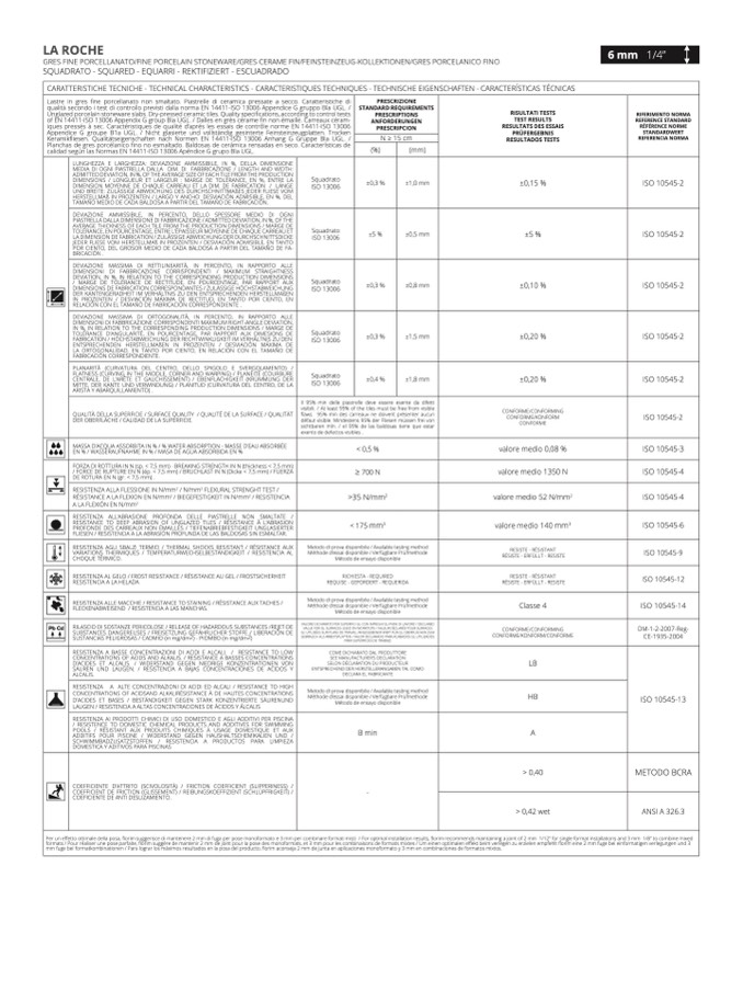 à secondo i test di controllo previsti dalla norma EN 14411-ISO 13006 Appendice G gruppo BIa UGL.